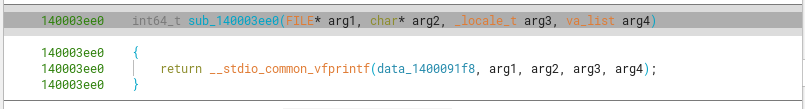 Main looks like this at the start, but we can start identifying commonly used functions (in the binary) and standard functions (like vfprintf, as shown below)