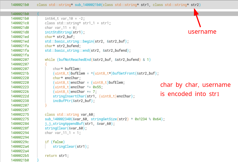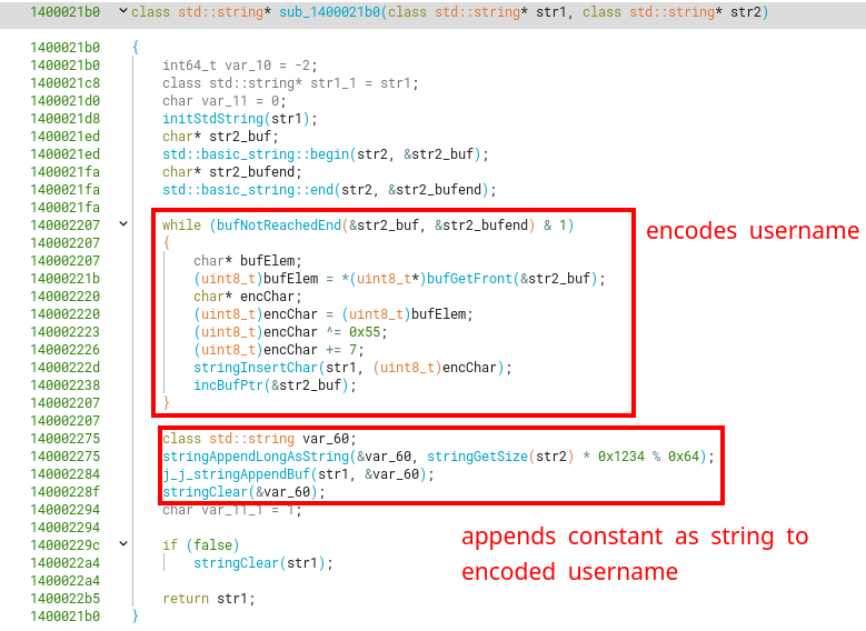 Knowing how previous functions behave, we can now summarize this function as a sort of encoder for the username + appending a constant as a string to it’s end.