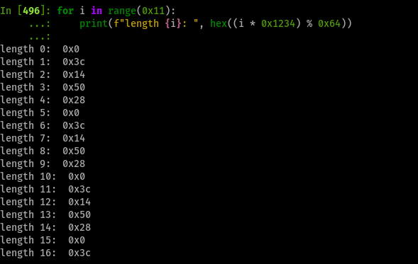 The following values are what we would get from it depending on the username size (we checked until reaching length 16), however it’s cyclical.