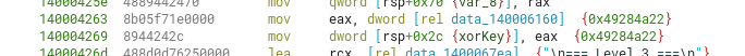 Another worthy of mention bit of info is that the xor’ed key was stored in the .data section, which means it was an initialized static variable.