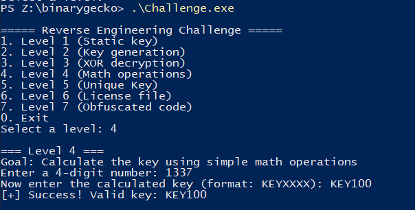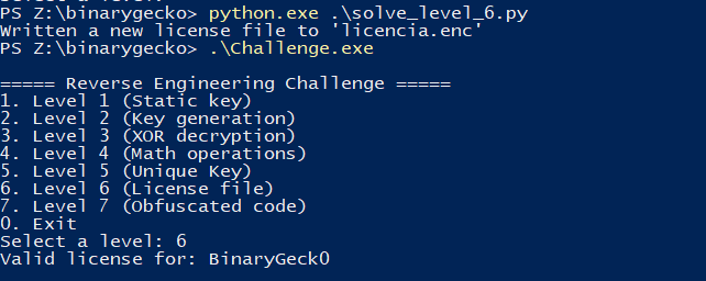 This post corresponds to the verbatim (non-modified) report I used to apply to Binary Gecko’s Academy. Binary Gecko is a leading company in Vulnerability Research located in Germany that opened an academy program this year in Argentina with the noble goal of teaching the fundamentals of VR and preparing the next generation of Vulnerability Researchers in the region. This challenge had a duration of 7 days (ending on November 1st), and it consisted of 7 levels with increasing difficulty in RE on Windows x86_64. The end goal was to select the best alumni for the limited spots.