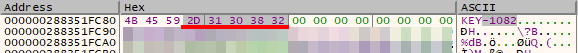 We can easily confirm the match for the hardcoded key B4S1C on runtime.