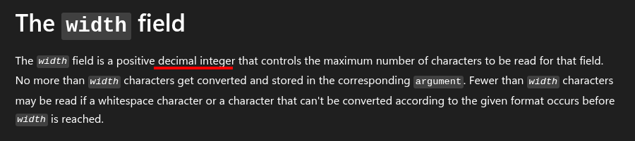 The string is read using the format string %19s in scanf, which means it will read 19 single-byte chars unless it finds a space, tab or newline (according to Microsoft’s specs).