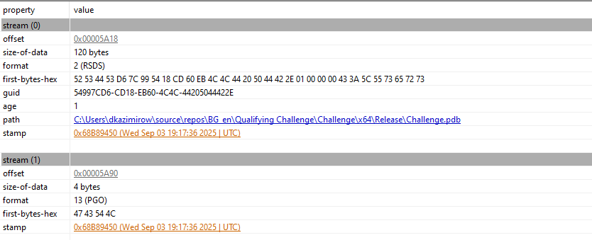 From the imports for this program, we quickly see that it’s a C++ binary. Although we can’t find the ID of its Visual Studio version used to compile it with.